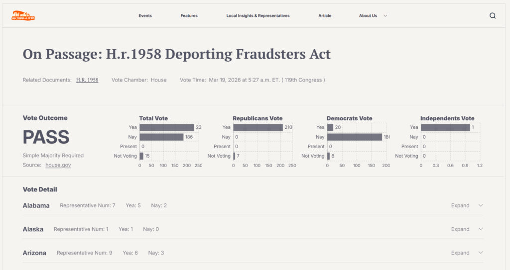 3/18: The Deporting Fraudsters Act of 2026 (H.R. 1958), passed by the House